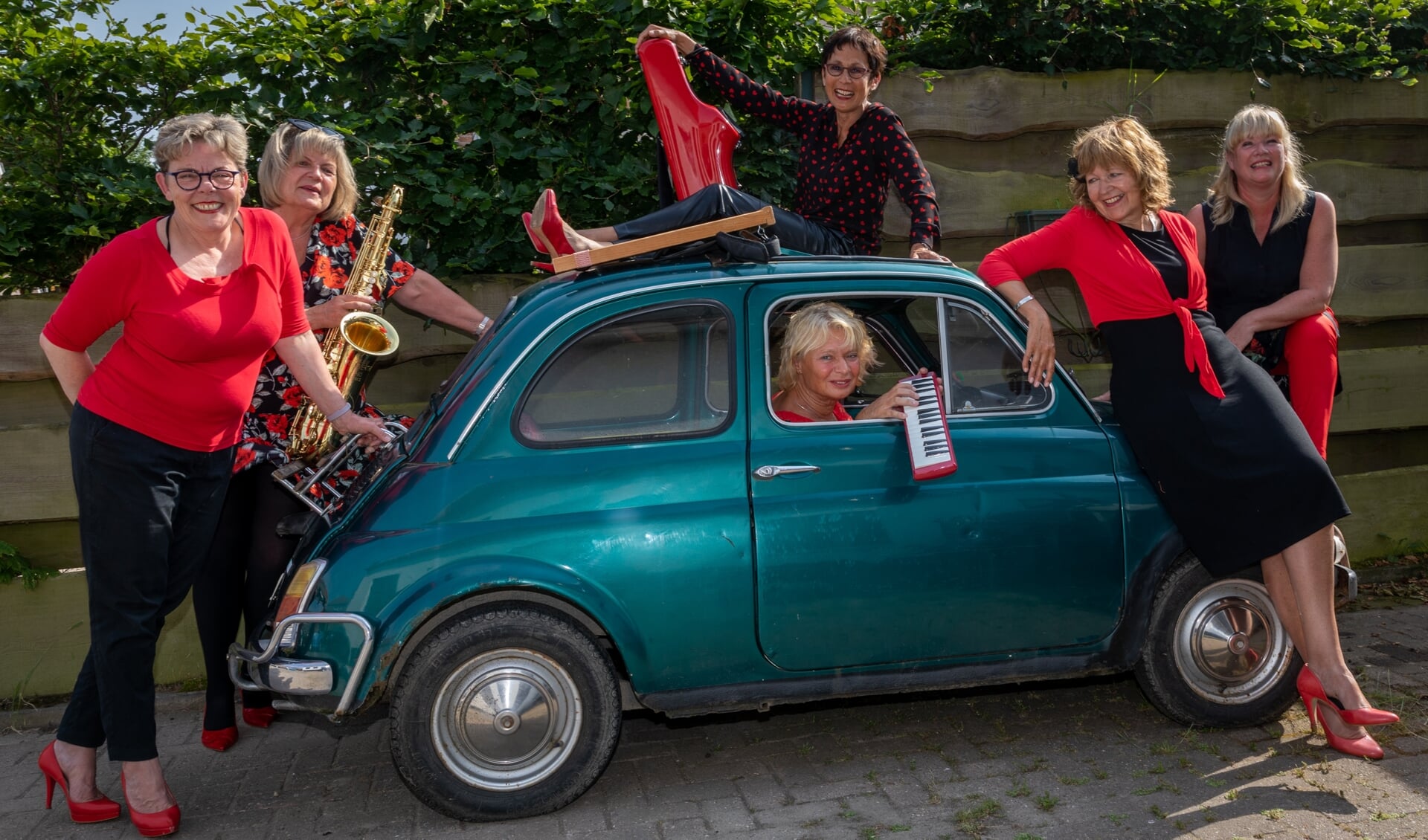 Metย Marijke Moritz leadzangeres,ย Ellen Bakker sax/contrabas, Monica Verschoor pianiste/zangeres, Judith Alkema basgitaar,ย Karin de Bye cajon/percussie enย Geerlande Homburg altsaxofoon.